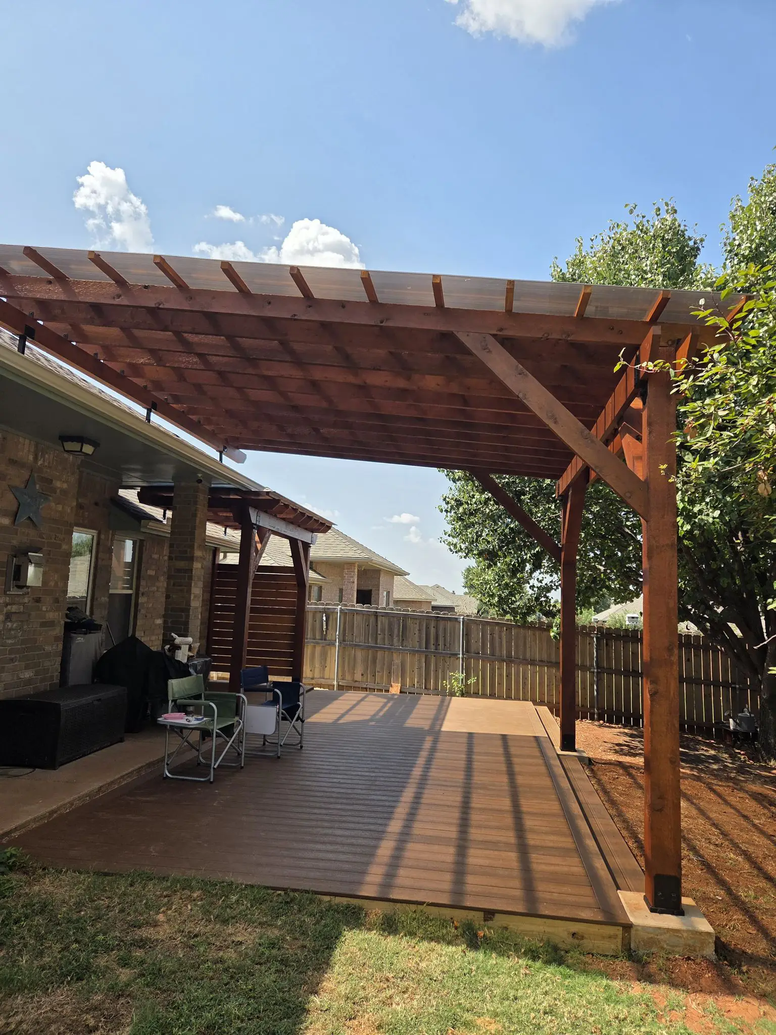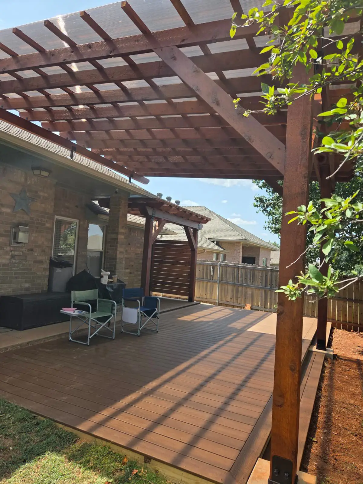 From shaded pergolas to fully loaded outdoor kitchens, our projects speak for themselves. These are real jobs completed for real Oklahoma homeowners.